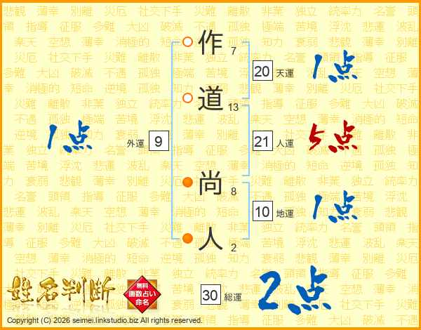 作道尚人さんの総運は30画の2点!