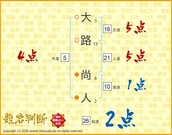 大路尚人さんの総運は26画の2点!