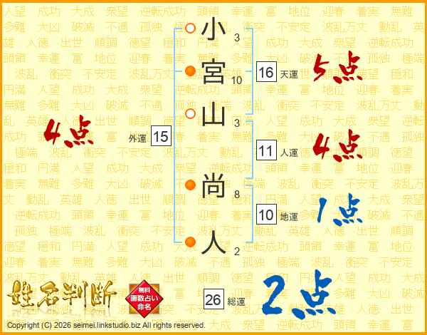 小宮山尚人さんの総運は26画の2点!