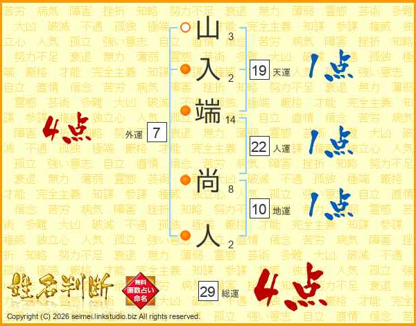 山(3画)入(2画)端(14画) 尚(8画)人(2画)