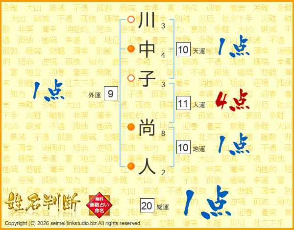 川(3画)中(4画)子(3画) 尚(8画)人(2画)