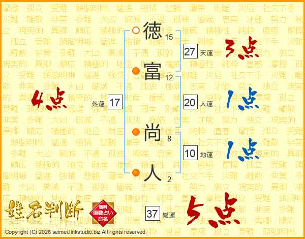徳富尚人さんの総運は37画の5点!