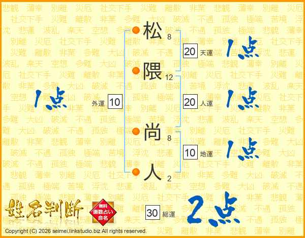 松隈尚人さんの総運は30画の2点!