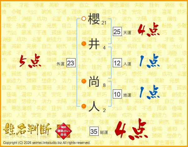 櫻井尚人さんの総運は35画の4点!