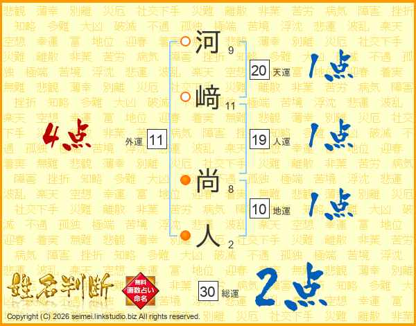 河﨑尚人さんの総運は30画の2点!