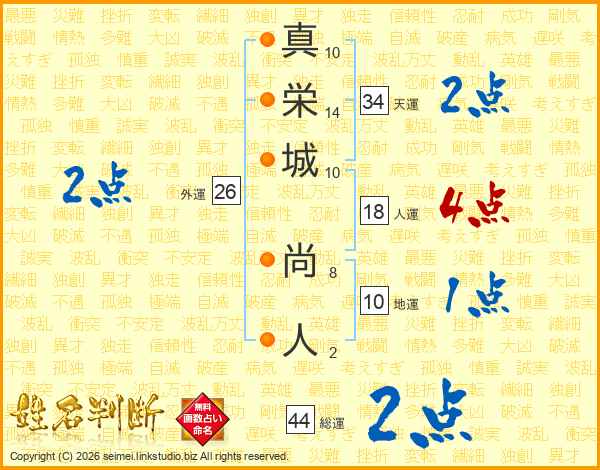 真(10画)栄(14画)城(10画) 尚(8画)人(2画)