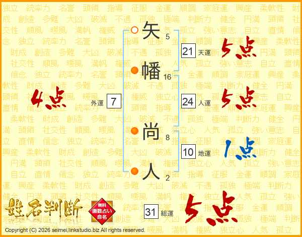 矢(5画)幡(16画) 尚(8画)人(2画)