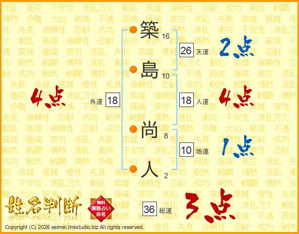 築(16画)島(10画) 尚(8画)人(2画)