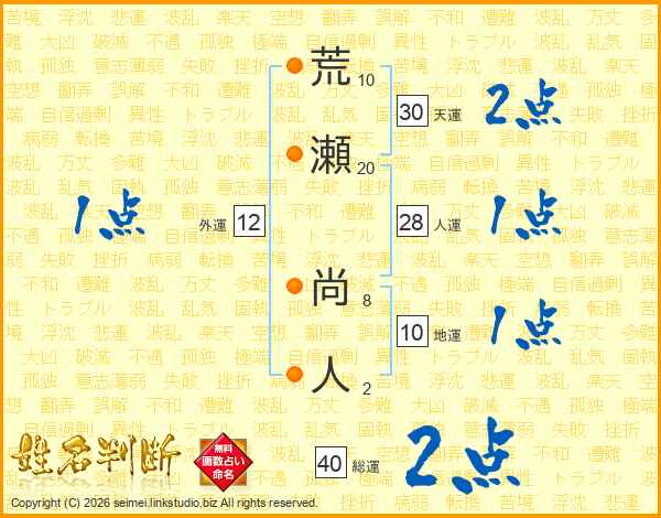 荒瀬尚人さんの総運は40画の2点!