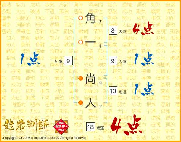 角一尚人さんの総運は18画の4点!