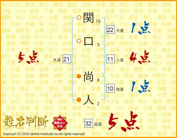 関口尚人さんの総運は32画の5点!