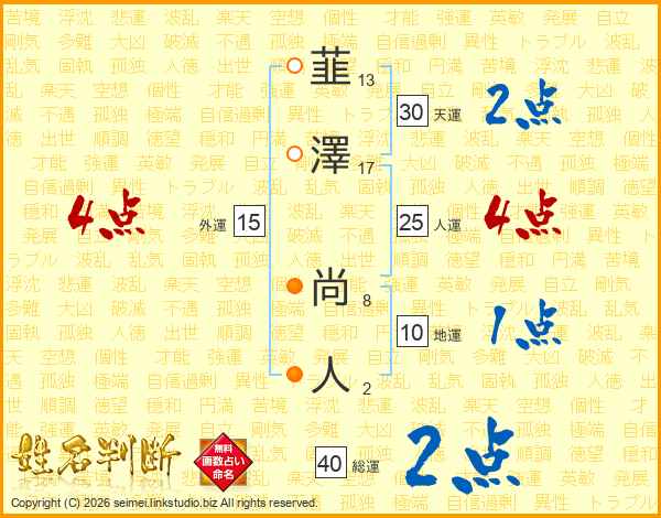 韮澤尚人さんの総運は40画の2点!