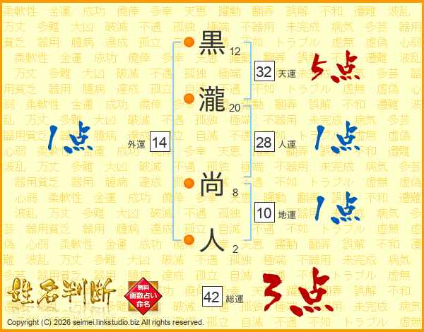 黒瀧尚人さんの天運は32画の5点!