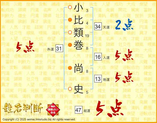 小比類巻尚史さんの総運は47画の5点!