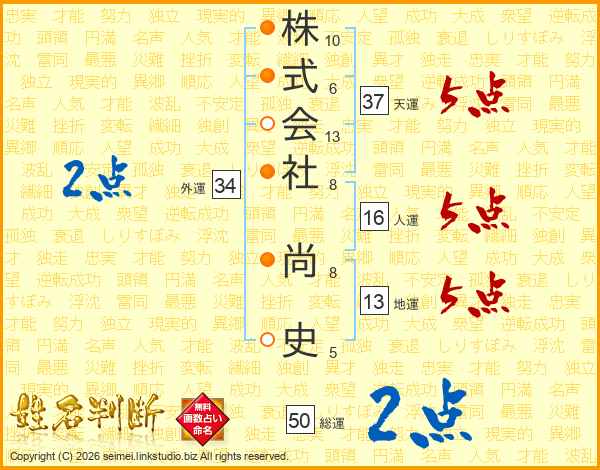 株(10画)式(6画)会(13画)社(8画) 尚(8画)史(5画)
