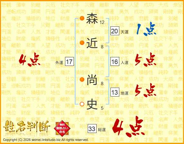 森近尚史さんの総運は33画の4点!