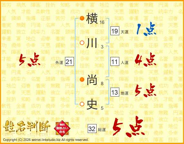 横川尚史さんの総運は32画の5点!
