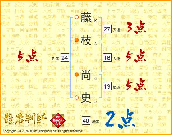 藤(19画)枝(8画) 尚(8画)史(5画)