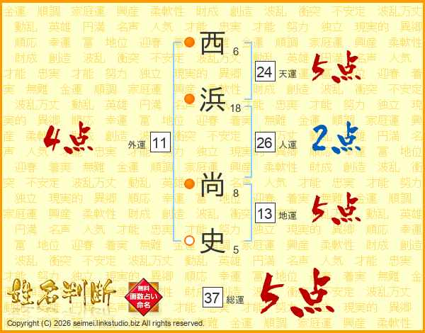 西浜尚史さんの総運は37画の5点!