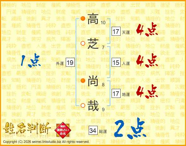 高(10画)芝(7画) 尚(8画)哉(9画)
