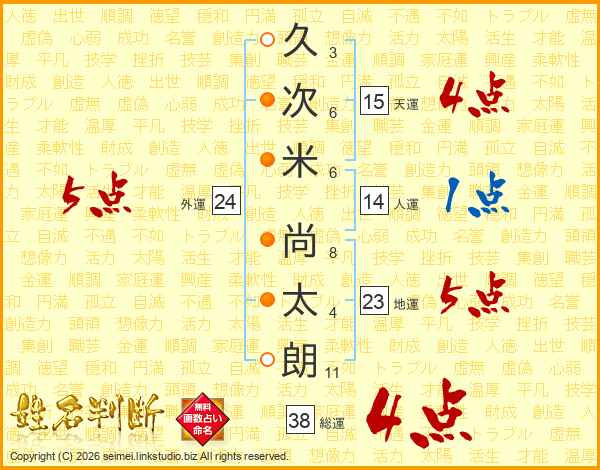 久次米尚太朗さんの総運は38画の4点!