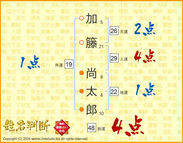 加籐尚太郎さんの総運は48画の4点!