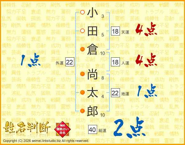 小田倉尚太郎さんの総運は40画の2点!