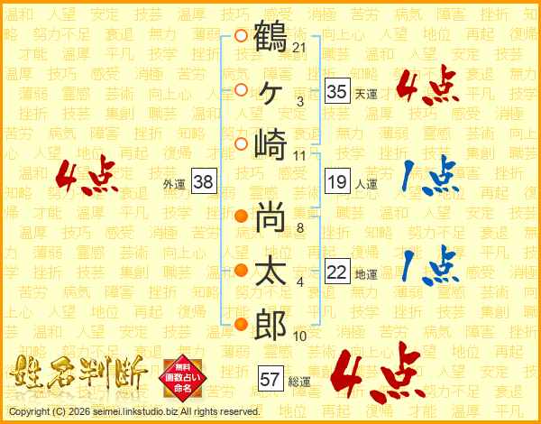 鶴ヶ崎尚太郎さんの総運は57画の4点!