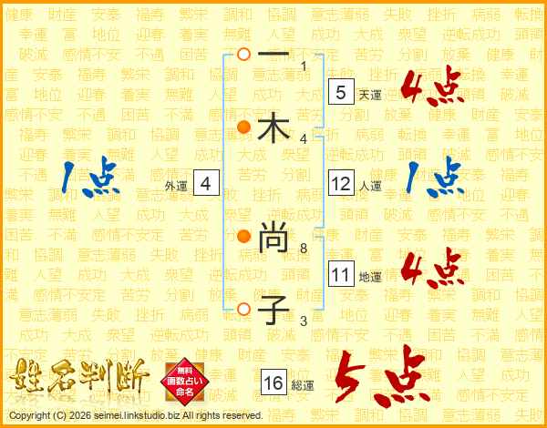 一木尚子さんの総運は16画の5点!