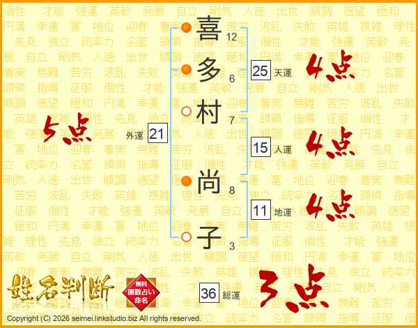 喜多村尚子さんの天運は25画の4点!