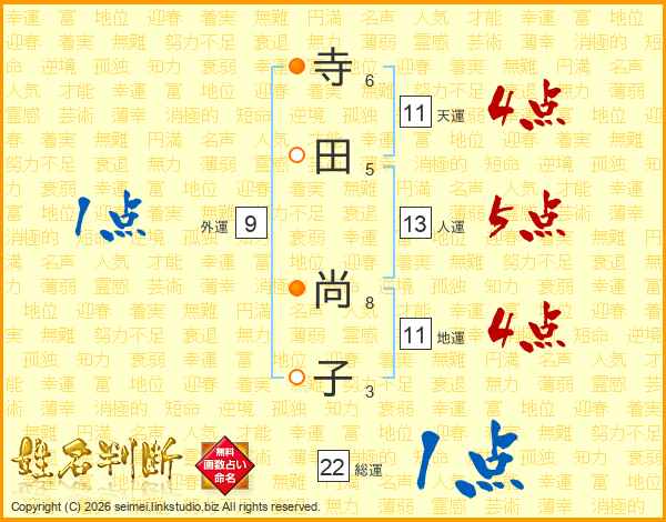 寺田尚子さんの天運は11画の4点!