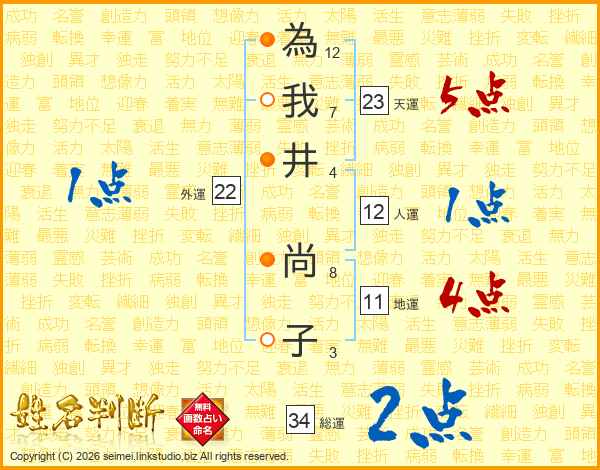 為(12画)我(7画)井(4画) 尚(8画)子(3画)