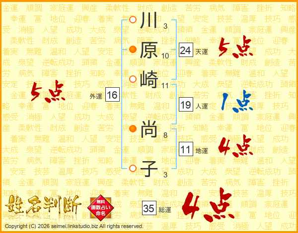 川原崎尚子さんの総運は35画の4点!