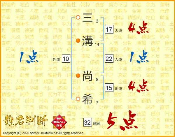三溝尚希さんの総運は32画の5点!