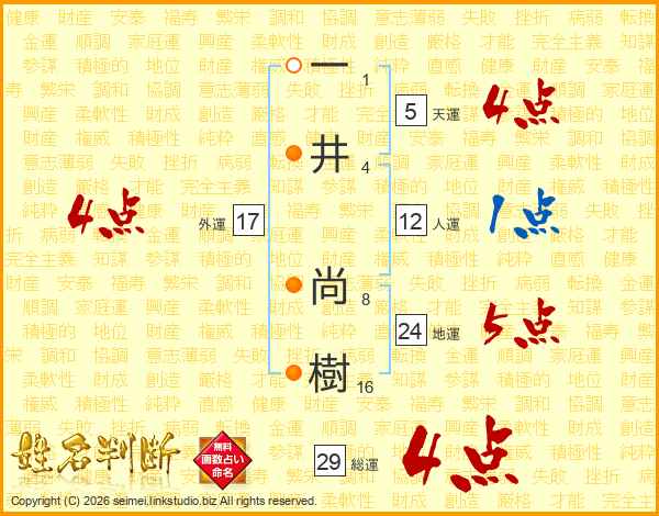 一(1画)井(4画) 尚(8画)樹(16画)