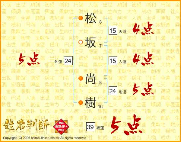 松坂尚樹さんの総運は39画の5点!