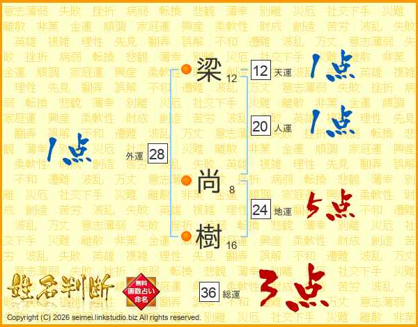 梁(12画) 尚(8画)樹(16画)