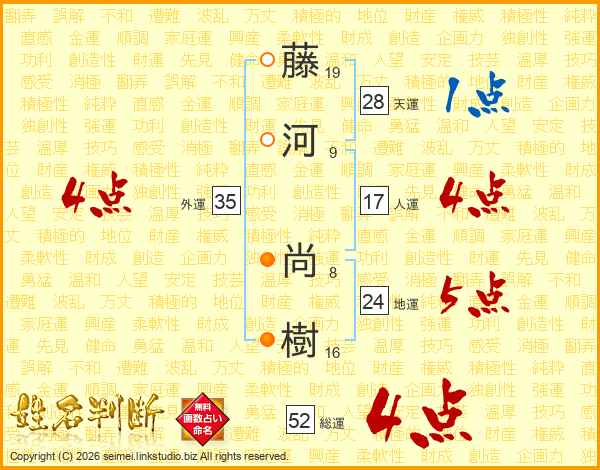 藤河尚樹さんの総運は52画の4点!