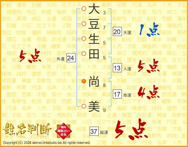 大豆生田尚美さんの総運は37画の5点!