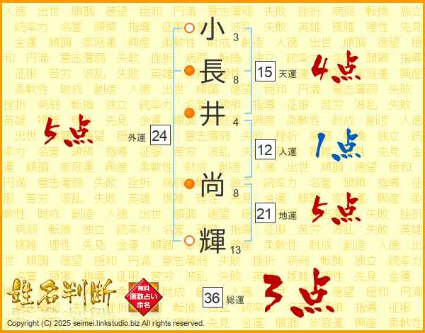 小長井尚輝さんの地運は21画の5点!