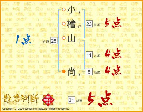 小檜山尚さんの総運は31画の5点!