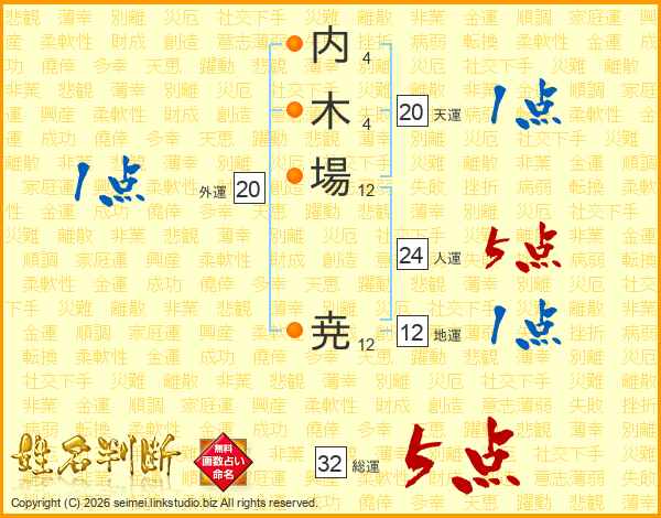 内木場尭さんの総運は32画の5点!