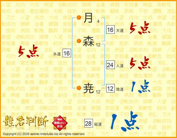 月森尭さんの総運は28画の1点!