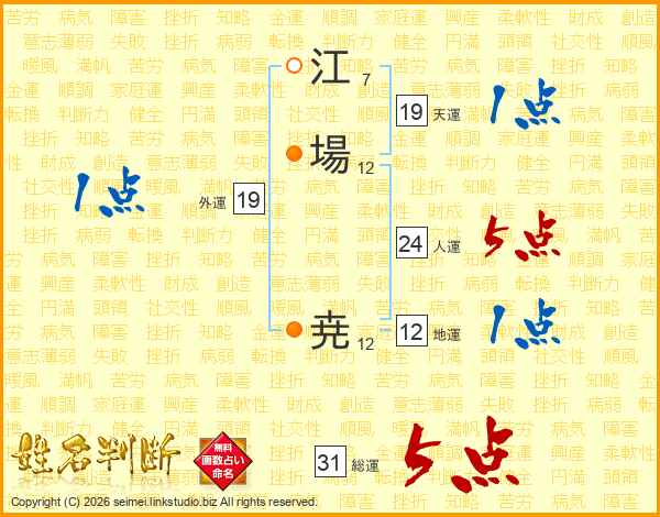 江場尭さんの総運は31画の5点!