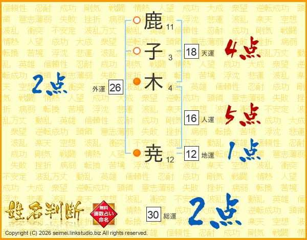 鹿(11画)子(3画)木(4画) 尭(12画)