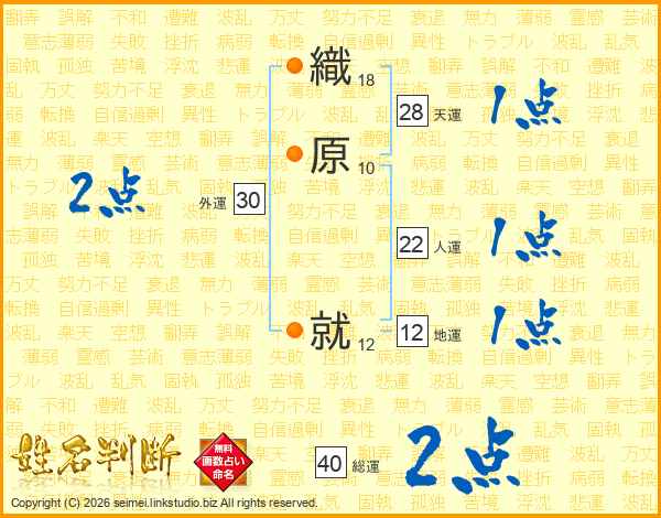 織原就さんの総運は40画の2点!