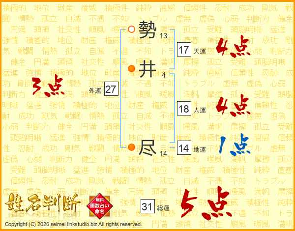 勢井尽さんの総運は31画の5点!