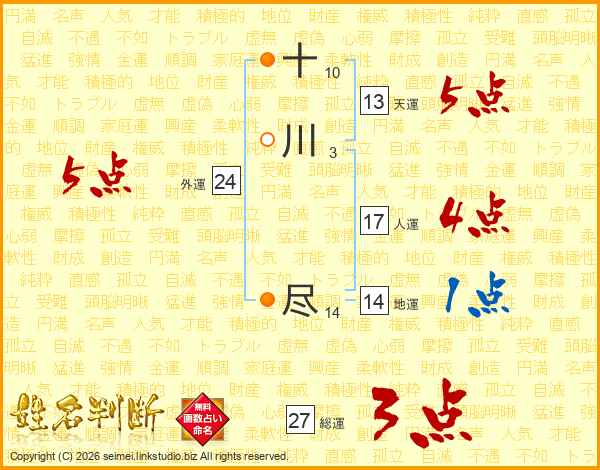 十川尽さんの総運は27画の3点!