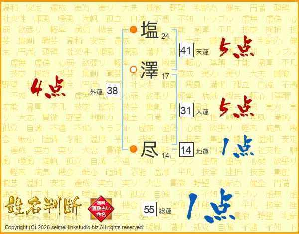 塩澤尽さんの天運は41画の5点!
