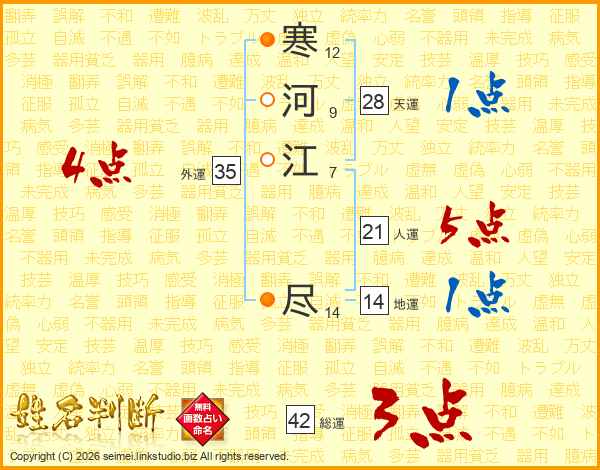寒河江尽さんの総運は42画の3点!